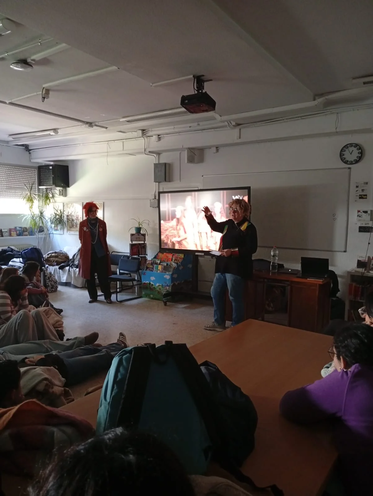 Alumnat del projecte Més Oportunitats de l’entitat Dimas per la Inserció sociolaboral de persones migrades. El grup de joves participen en el procés de creació de l’escenografia.