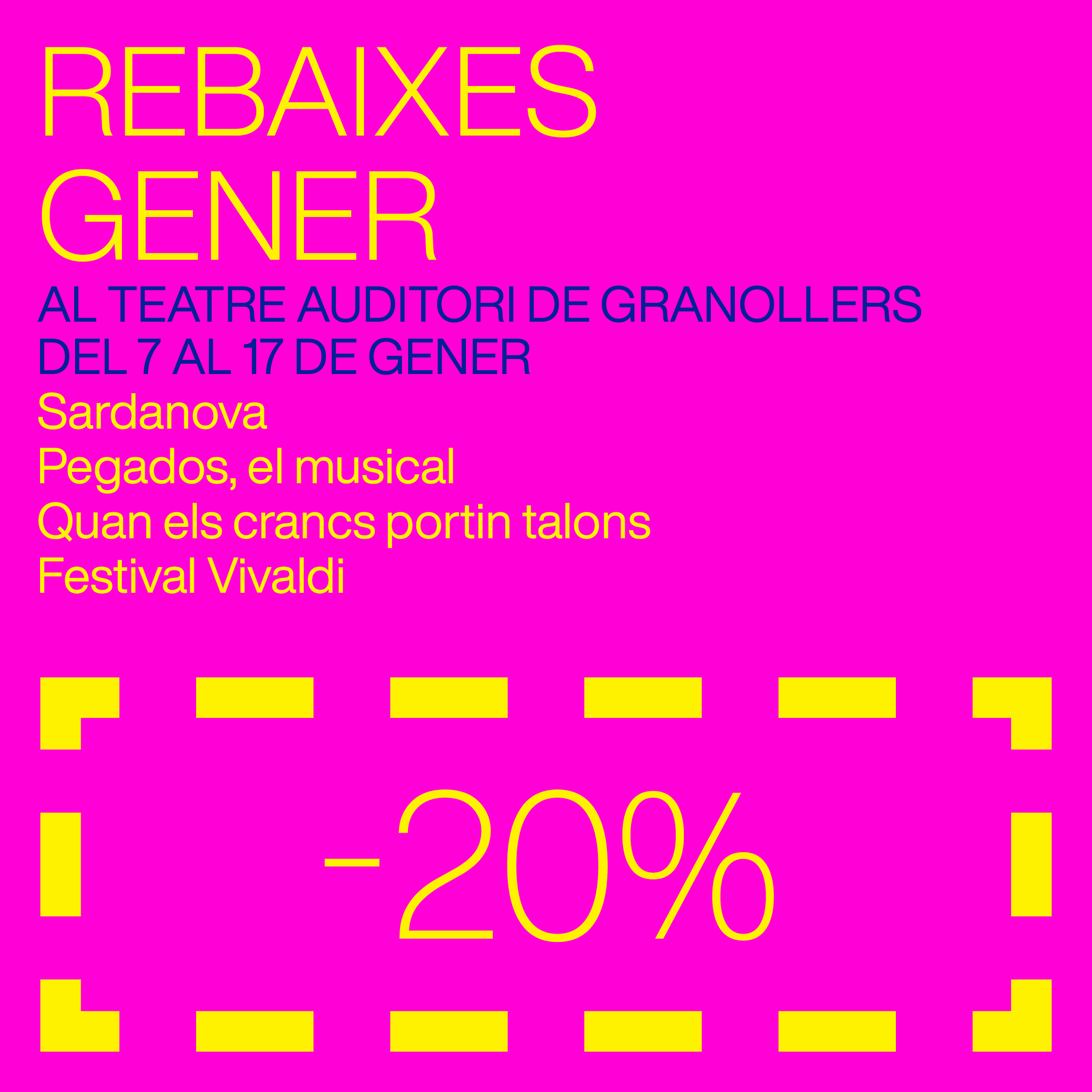 Del 7 al 17 de gener, pots comprar entrades d'alguns espectacles del Teatre Auditori de Granollers al 20% de descompte! Per gaudir del descompte...