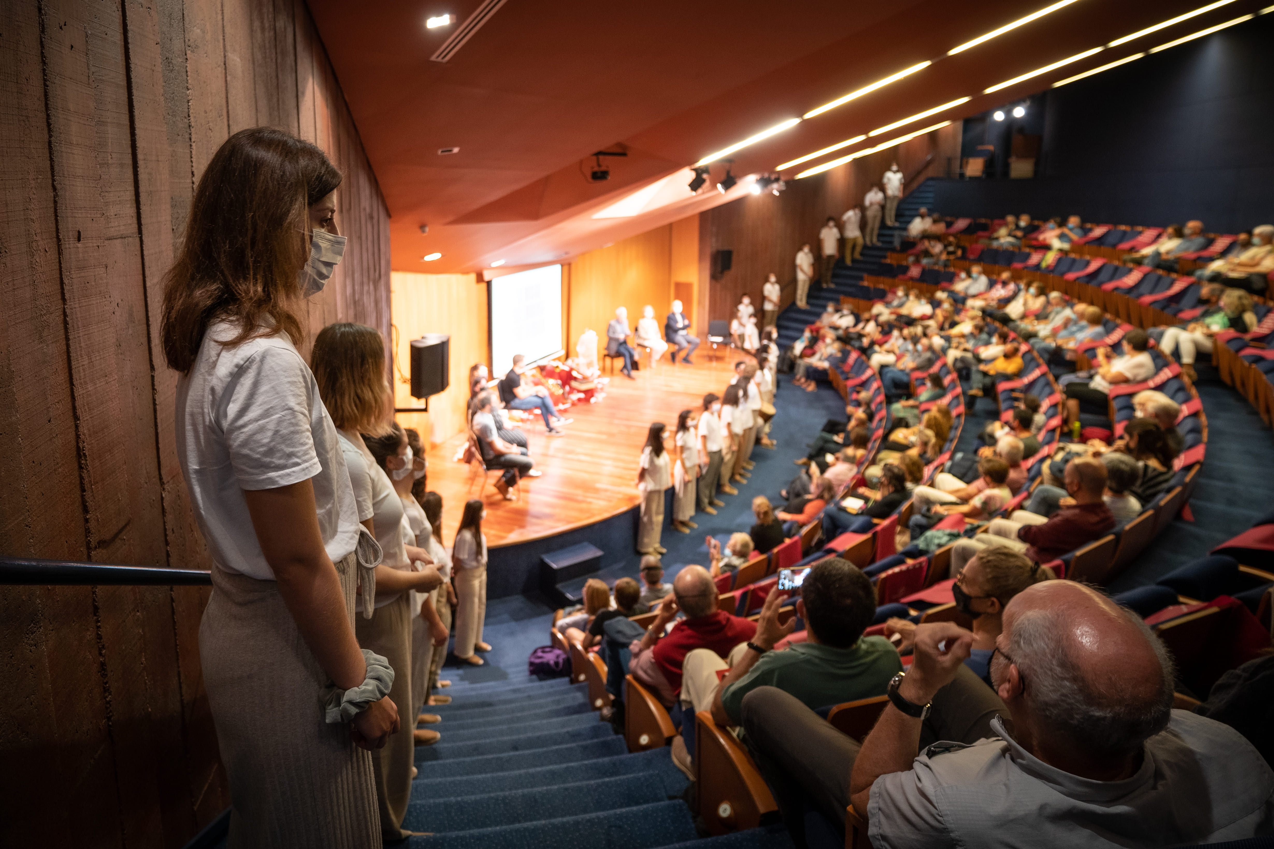 La cirereta del pastís, però, la va posar el Cor Jove, recentment incorporat com a cor resident al Teatre Auditori de Granollers. I és que, just després de que l’alcalde tanqués la presentació tot destacant una de les grans produccions locals de la temporada: Greta i els Trihumans, van aparèixer a la Sala Petita els membres del cor per regalar al públic una petita actuació sorpresa. Embolcallant al públic, el cor va cantar To the mothers in Brazil (Salve Regina) de Lars Jansson, una de les peces del repertori LUX, que enregistraran aquest cap de setmana i que va emportar-se els aplaudiments efusius del públic.