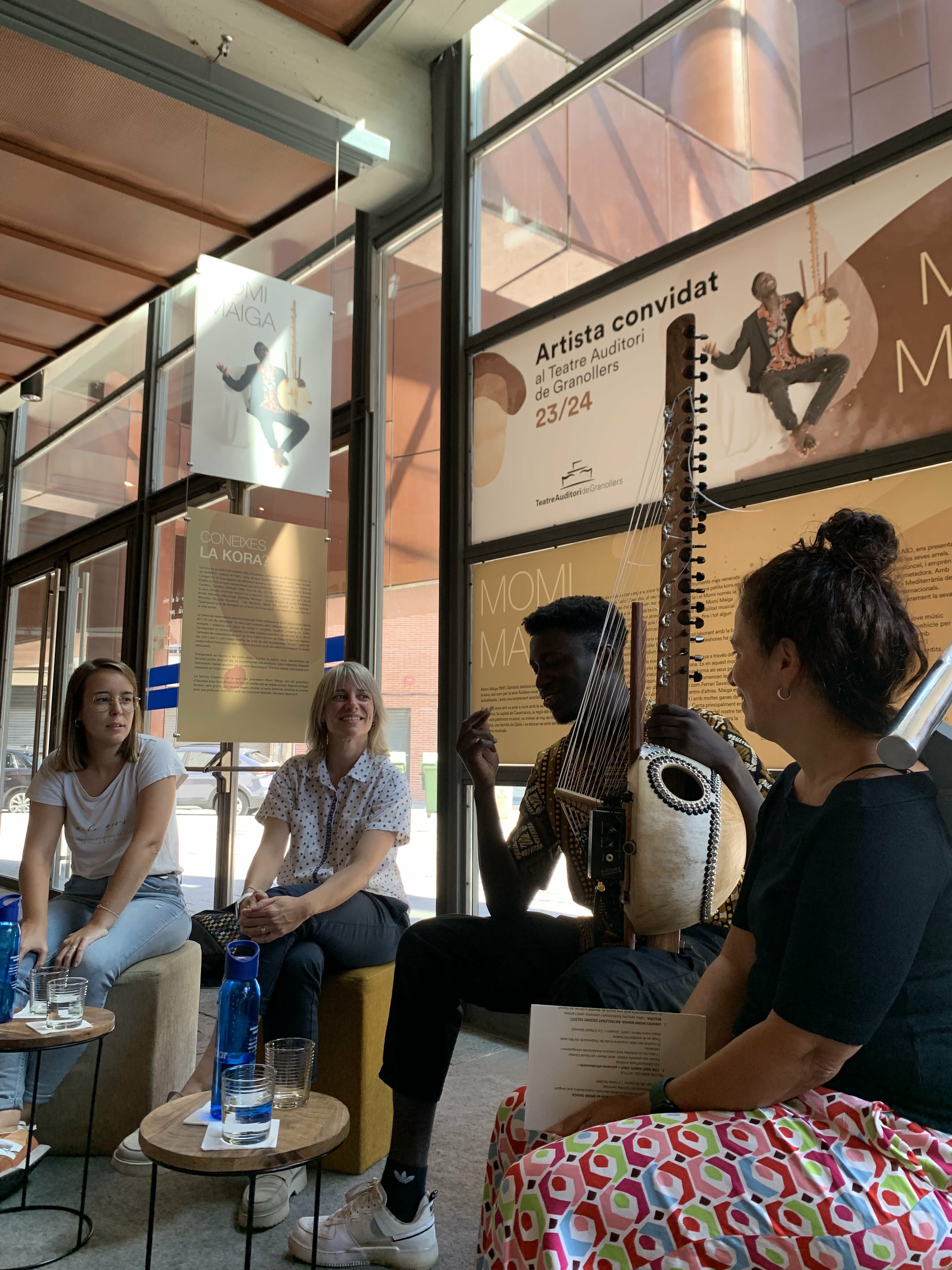 Amb el magnífic so de la kora va començar ahir la presentació d’en Momi Maiga, el nou artista convidat de la temporada 23/24 al Teatre Auditori de Granollers. Una presentació que va tenir lloc davant d’una exposició sobre el propi artista, al vestíbul del Teatre, i amb la presència del mateix artista, la programadora del Teatre Auditori, Laura Llamazares, la regidora de Cultura de Granollers, Maria Villegas i l’alcaldessa de Granollers, Alba Barnusell.
