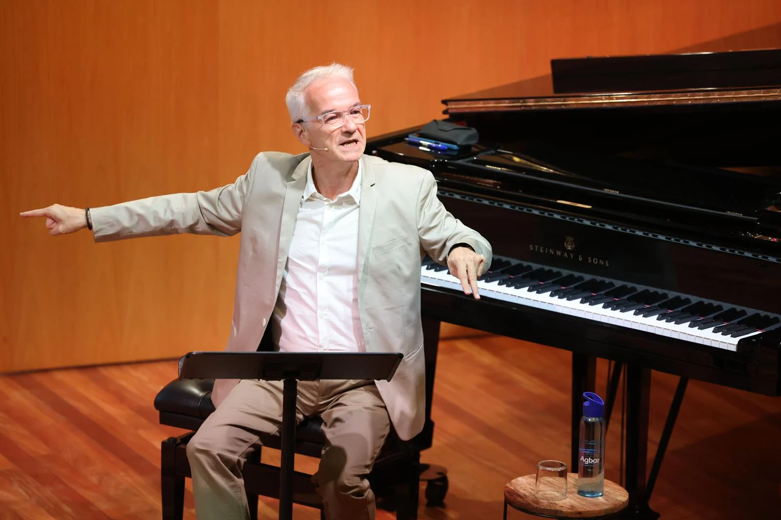 La directora del Teatre Auditori, Tracy Sirés, va iniciar l’acte amb la lectura del manifest de les arts escèniques per aturar el genocidi a Palestina. Un cop feta aquesta lectura, compartida per tot el sector de les arts escèniques de Catalunya, va començar la presentació de la nova temporada de música clàssica.