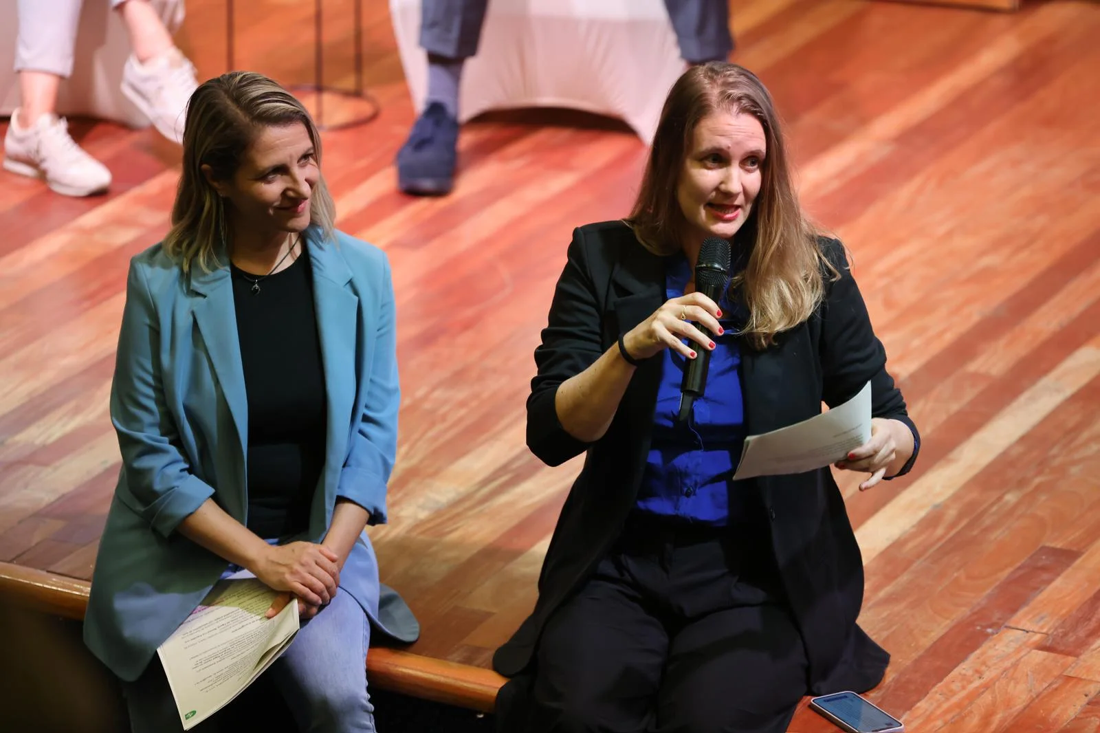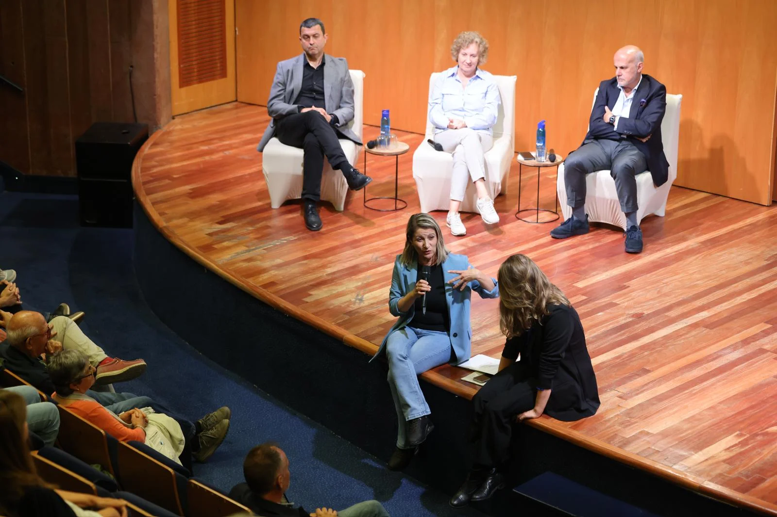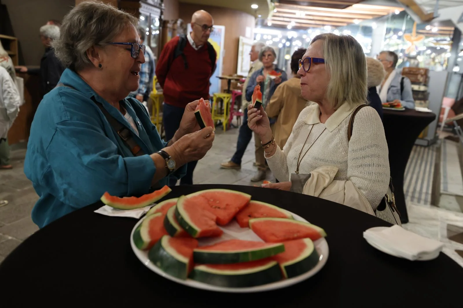 Després de la cloenda de la regidora de Cultura, Vanesa Jiménez, els assistents van poder entrar a la Sala Gran per veure un fragment de l’assaig de Flor de Nit i, a continuació, al vestíbul del Teatre, el restaurant social El Gato Verde va oferir un petit refrigeri i uns talls de síndria, convertida en símbol de suport a la causa Palestina.