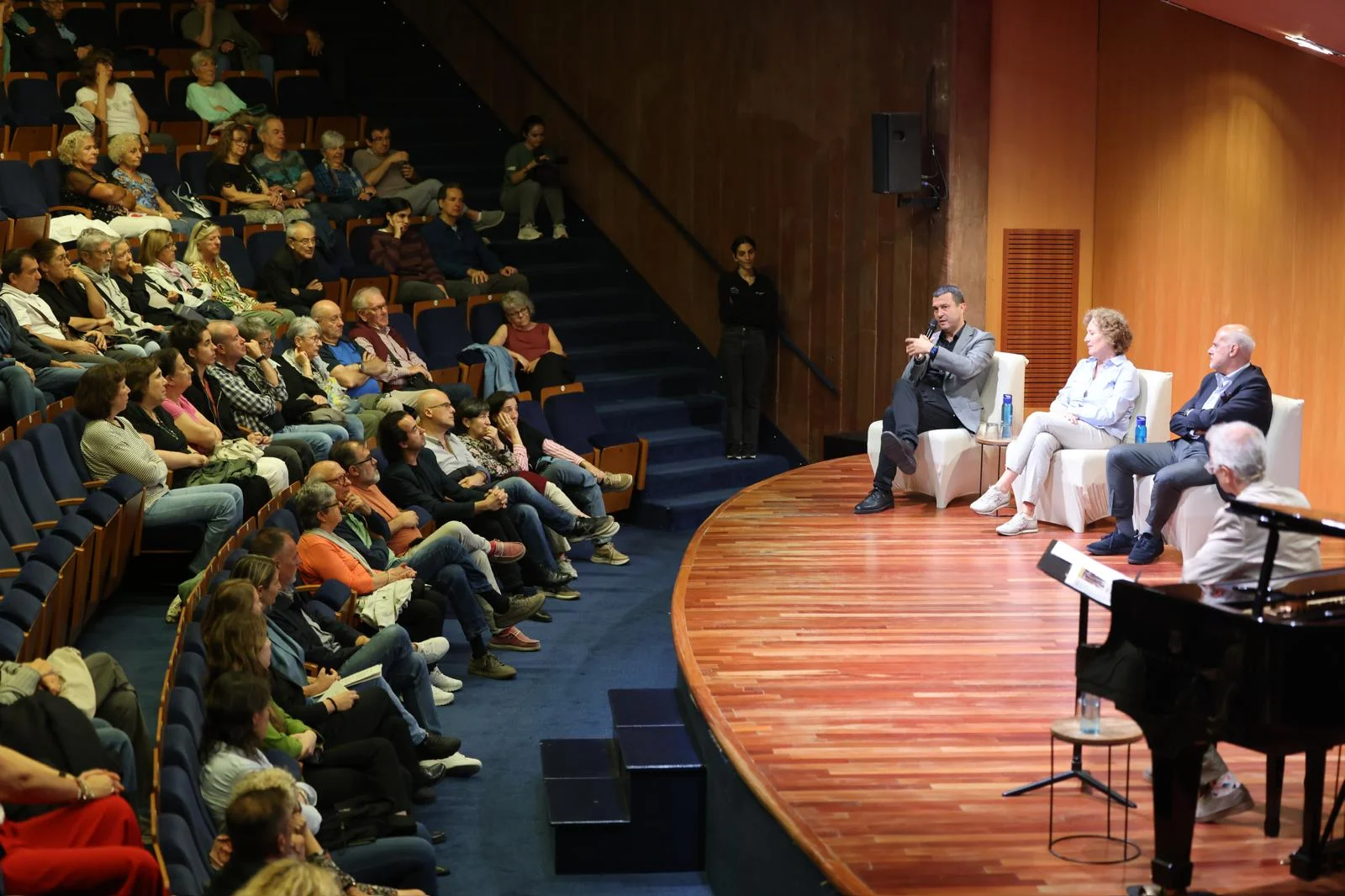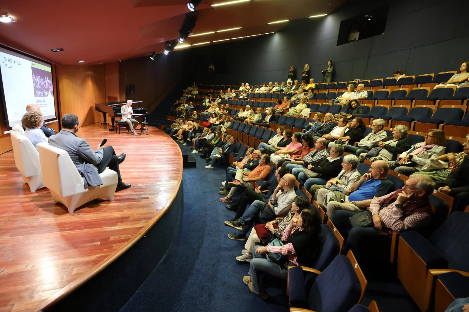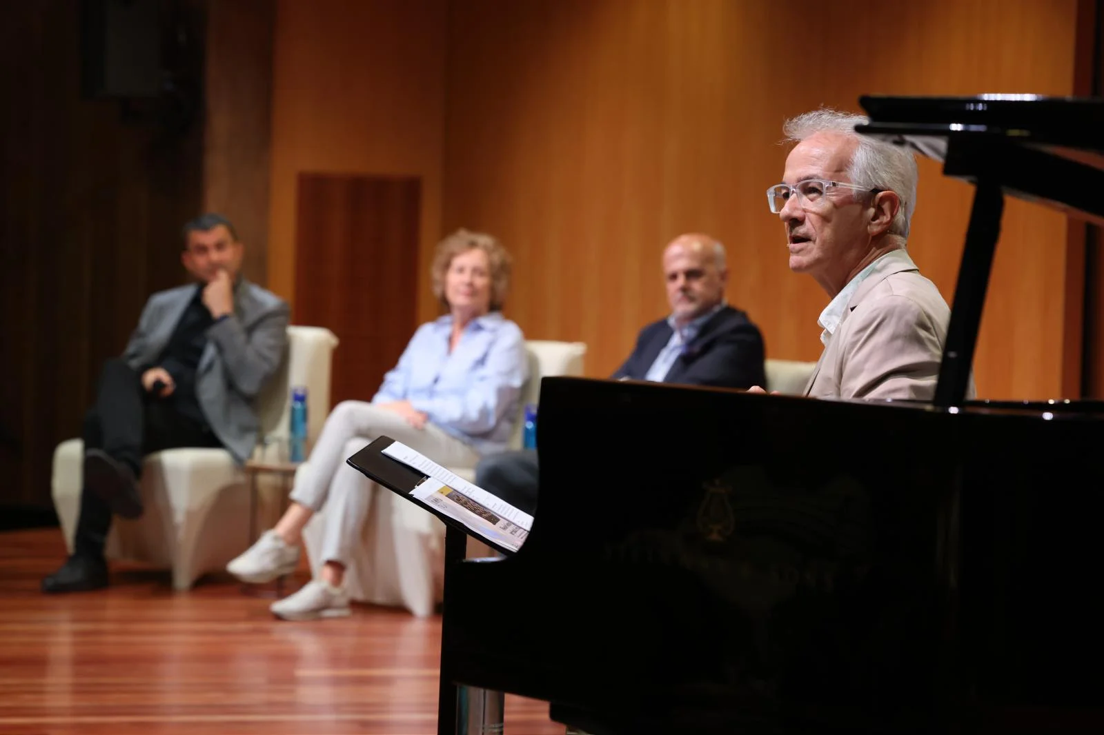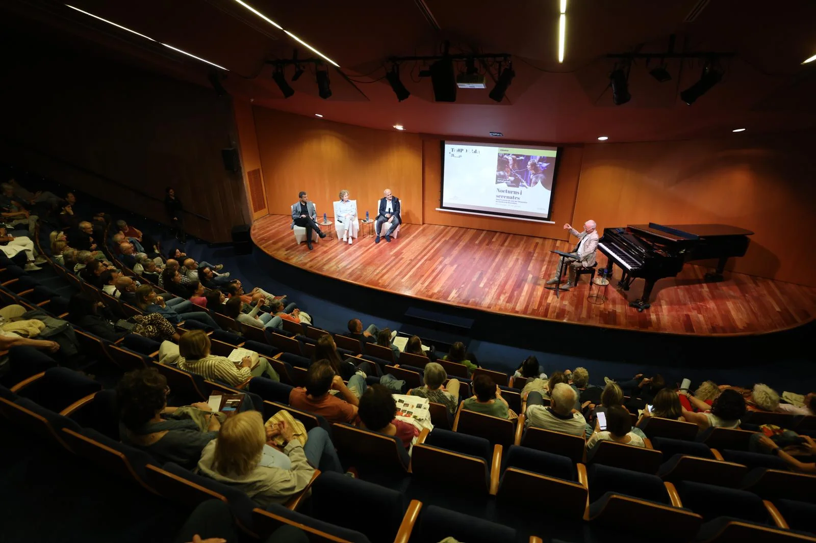 El musicòleg Xavier Chavarria va moderar l’acte, que va comptar amb la presència dels directors de les formacions residents del Teatre Auditori: Josep Vila, director de Veus – Cor Infantil Amics de la Unió i del Cor de Cambra de Granollers; Corrado Bolsi, director de l’Orquestra de Cambra de Granollers, i Anna M. Piera, gerent de l’Escola Municipal de Música de Granollers, que torna a impulsar el Cicle Carles Riera.