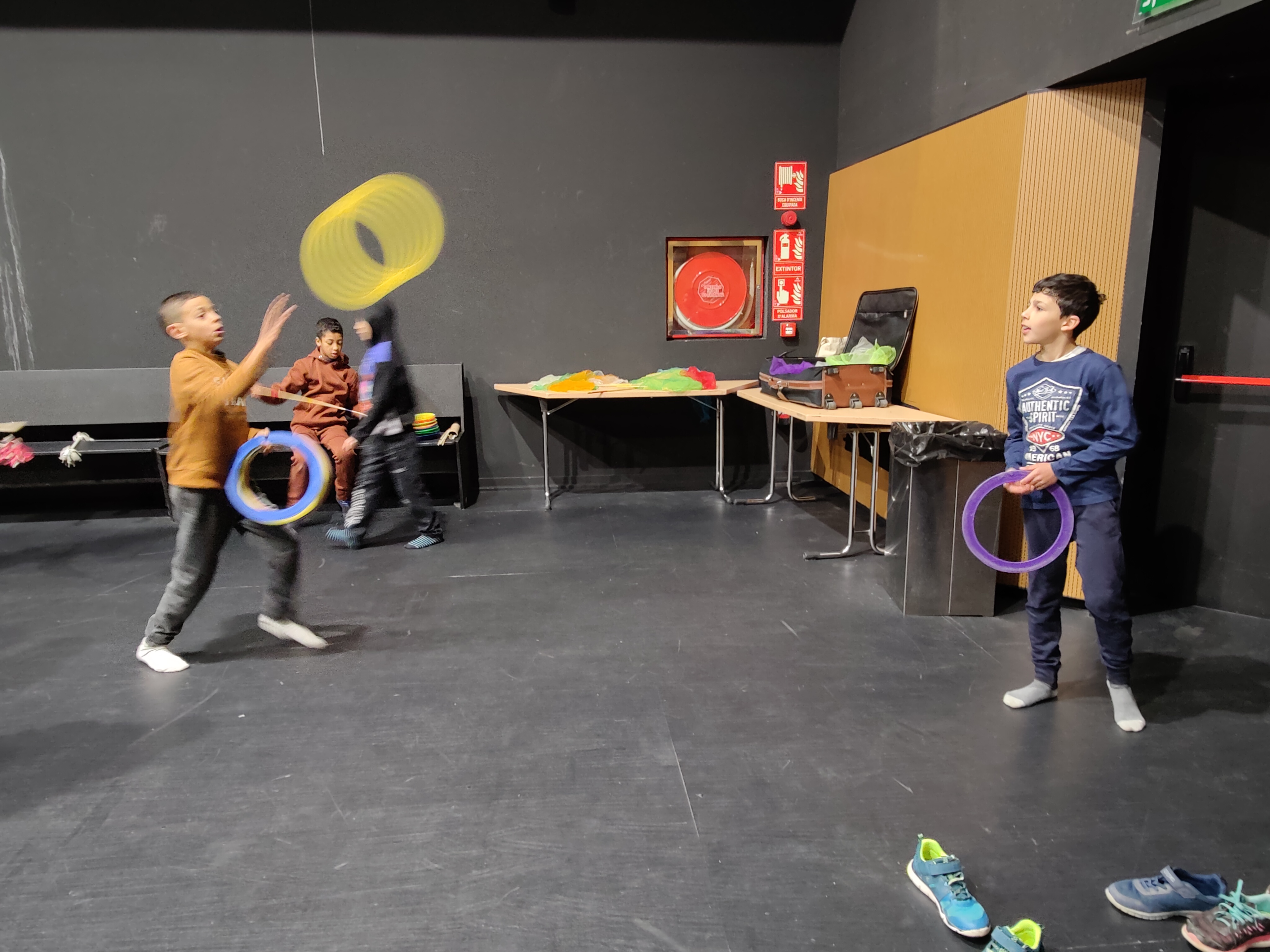 Els tallers de circ adreçats als alumnes de 3r i 4t de primària i a càrrec de David Cuspinera, actor, acròbata, ballarí i professor de tècniques de circ llicenciat per l’Institut del Teatre de Barcelona. Entre les activitats realitzades, es van treballar els equilibris (xanques, monocicle, funambulisme i rolla bolla), els malabars i els aeris (trapezi i teles).