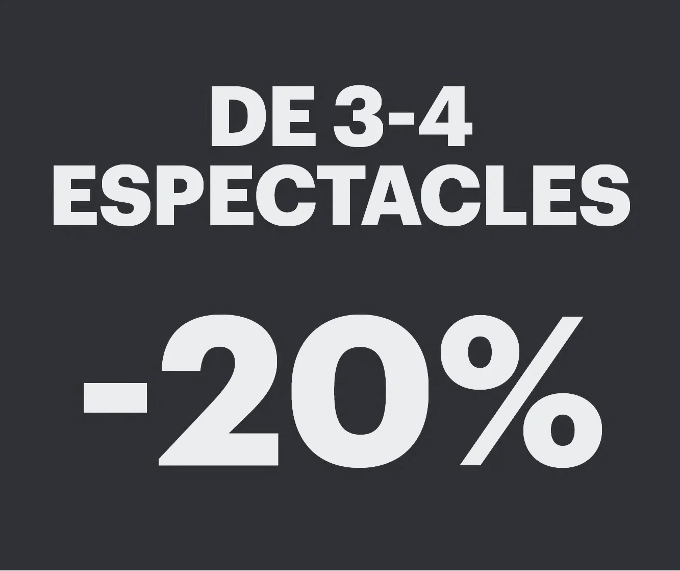 Compra el mateix nombre d’entrades per a 3 o 4 espectacles i tindràs el 20% de descompte.