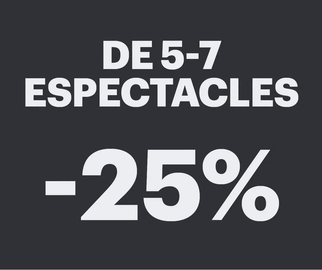 Compra el mateix nombre d’entrades per a 5, 6 o 7 espectacles i tindràs el 25% de descompte.