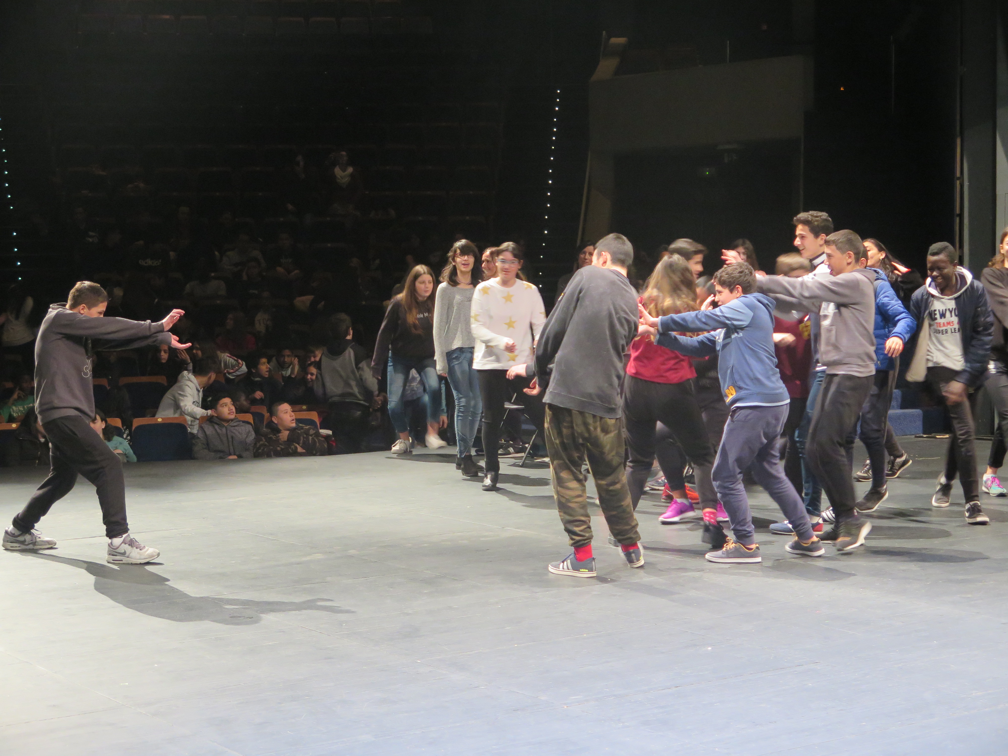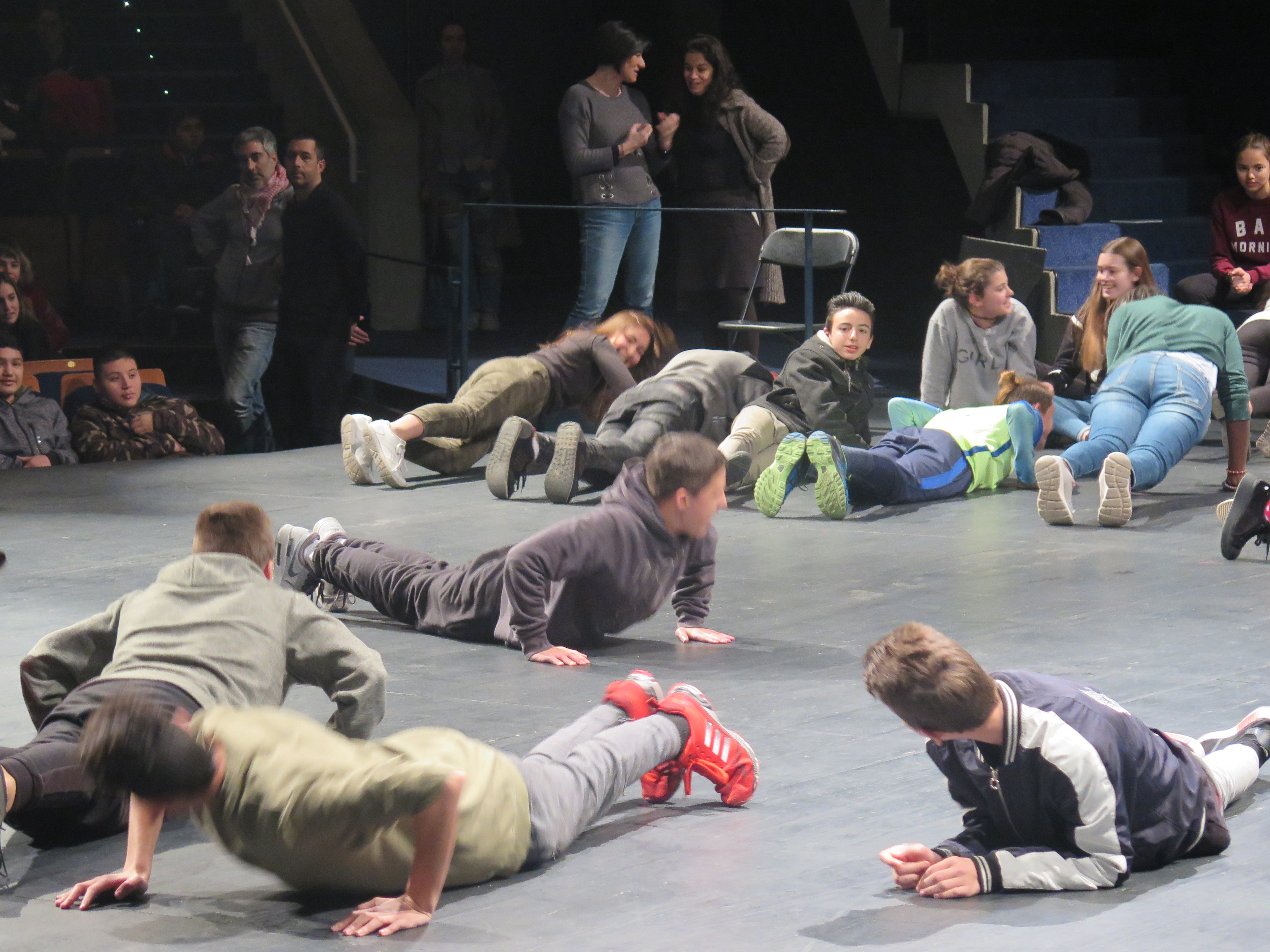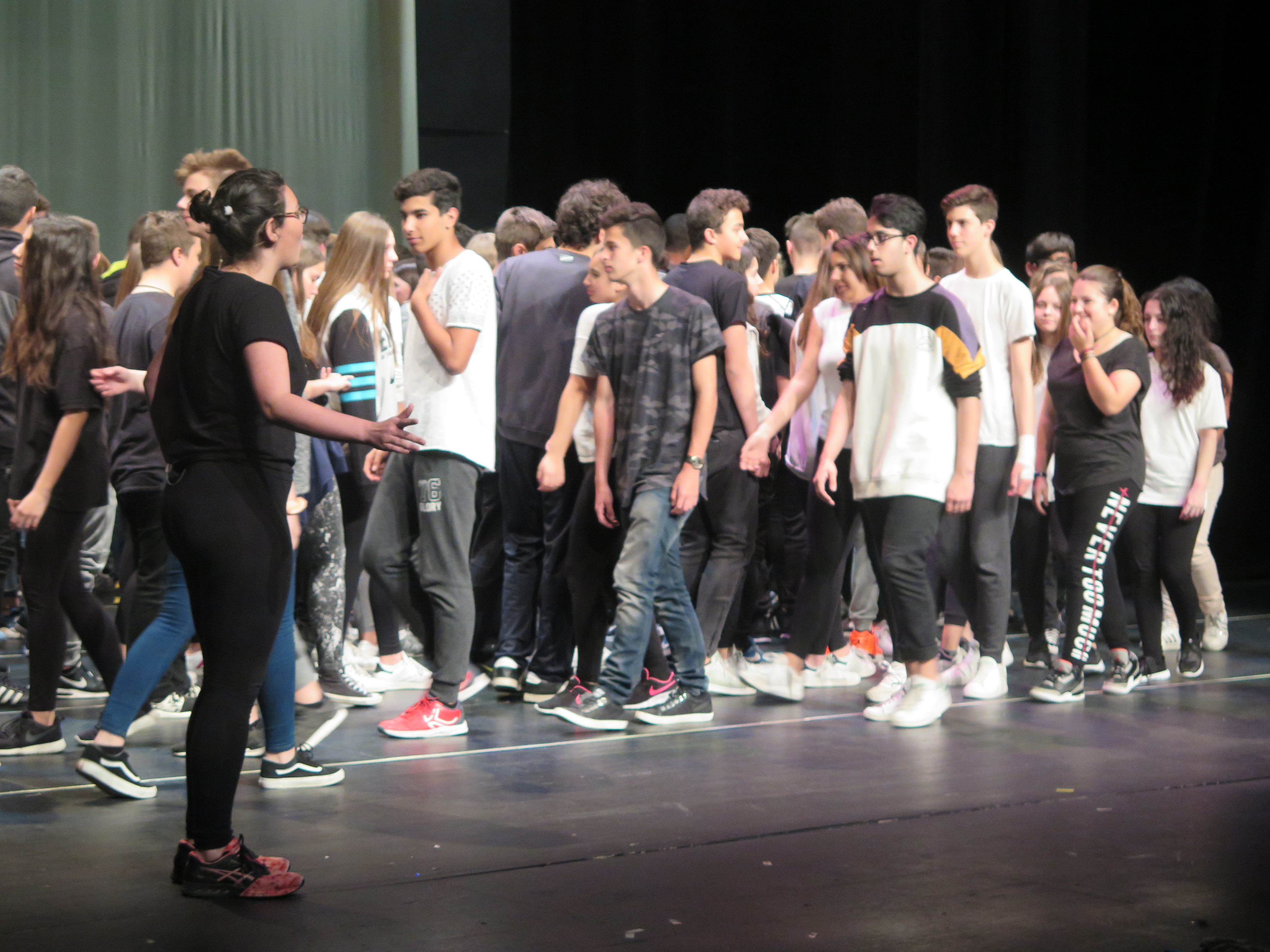 - Treball a les escoles: posteriorment les formadores assignades a cada institut introdueixen i treballen les propostes de moviment encaminades cap a poder compondre la coreografia que respondrà al tema i a la música proposada, amb el suport del professorat. Es fan un total de 10 hores de formació per cada grup-classe inscrit (màxim 30 alumnes per grup). S’inclou també un visionat d’un espectacle de dansa professional al Teatre Auditori de Granollers.