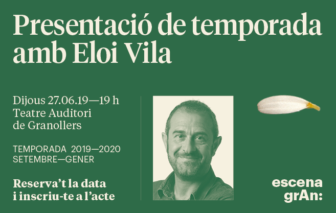 Els responsables d’Escena grAn presentaran el proper dijous 27 de juny, a les 19 h, a la Sala Petita del Teatre Auditori de Granollers la primera part de la Temporada 2019/2020 que, d’octubre de 2019 a gener de 2020, oferirà més d’una seixantena de propostes programades pels equipaments que integren el projecte Escena grAn: el Teatre Auditori de Granollers, Llevant Teatre, la Casa de Cultura Sant Francesc, Roca Umbert Fàbrica de les Arts i el Teatre Auditori Can Palots. Propostes de plena actualitat i per a totes les edats de música, teatre, òpera, circ, dansa i màgia!