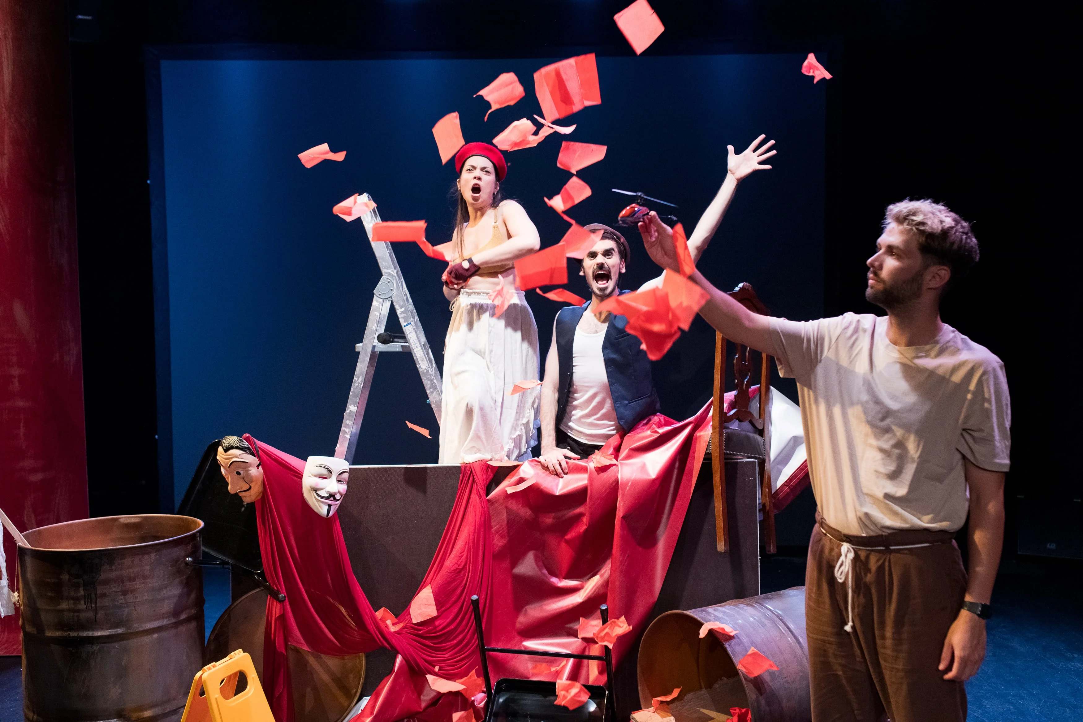 Els Miserables de Miquel Mas Fiol, reinterpreta el reconegut musical de Víctor Hugo convertint-lo en una sàtira metateatral esbojarrada i carregada de referents pop. Un director teatral egòlatra, amb l’ajuda d’actors desencantats i un muntatge precari, busca fama i diners amb una versió comercial, però acaba provocant una revolta inesperada. L’obra parla de somnis trencats, activisme cool i rebel·lia social, despullant la novel·la original de la seva càrrega revolucionària.