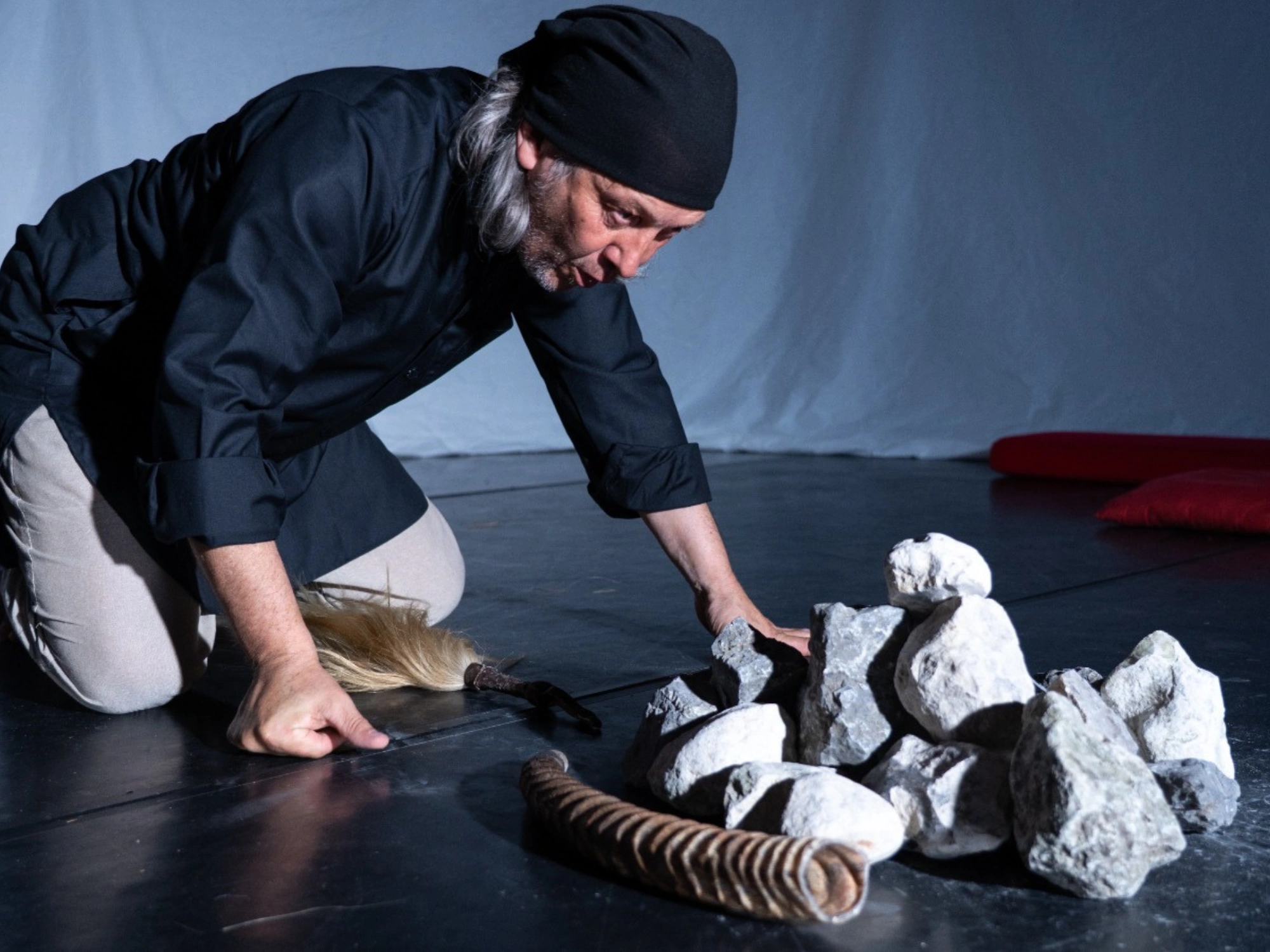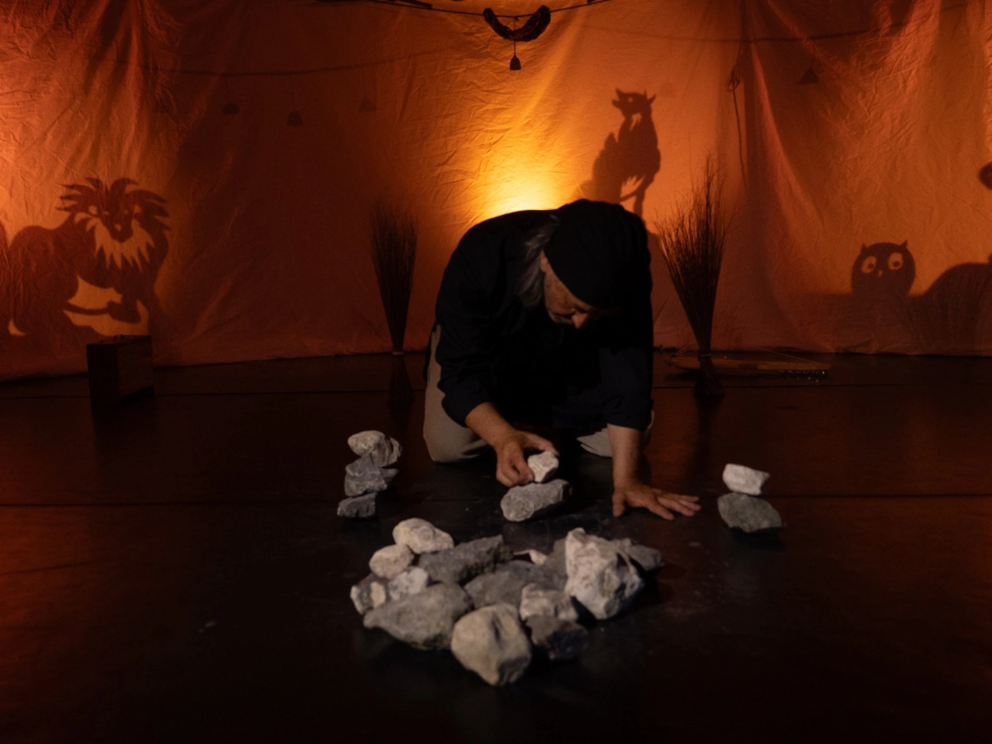 “SO” és un ritual per escoltar que convida a endinsar-se en els sons i les sensacions del paisatge. Veus, pedres, campanes i tambors es combinen per crear una experiència sensorial que ens permet viure el paisatge, travessar la nit i redescobrir-ho tot a l’albada.