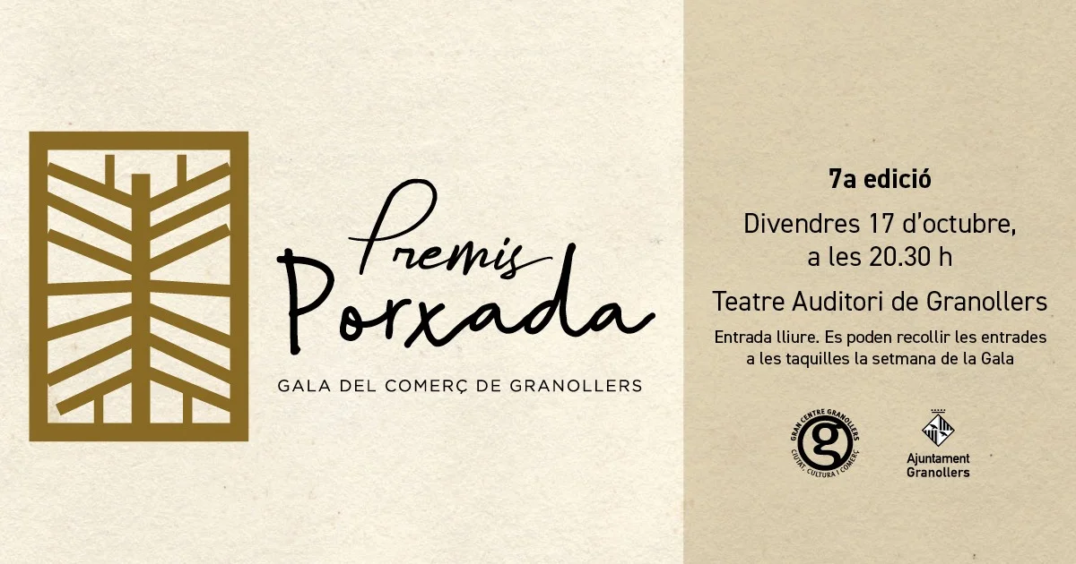 El pròxim divendres 17 d'octubre a les 20.30 h al Teatre Auditori de Granollers s'atorguen els Premis Porxada en el marc de la 7a Gala del Comerç de la ciutat. Els Premis Porxada posen en valor la trajectòria del sector comercial de la ciutat com a factor d'atracció de visitants, generador d'activitat econòmica i creador de llocs de treball.