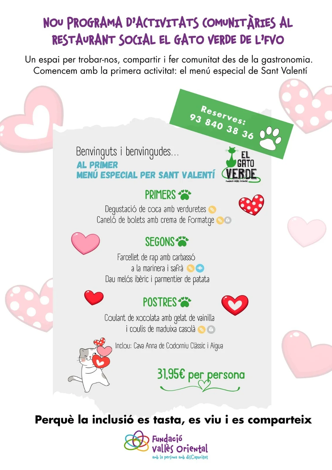 Sopar especial de Sant Valentí Menú especial (amb opció carta vàlida també).